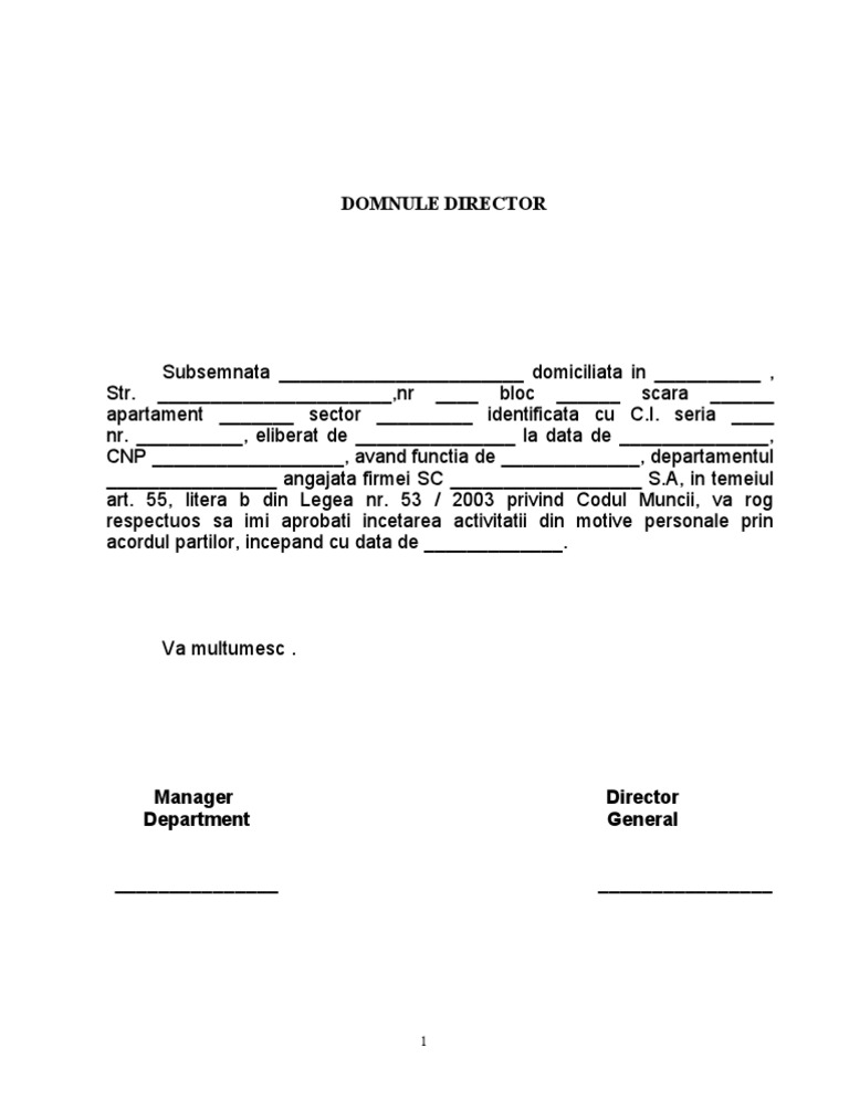 Cerere demisie fara preaviz pdf autor: Muncesc cu contract in germania. Dacă angajatorul îți cere să respecți preavizul de 20 de zile și să vii la job până la o anumită dată, atunci e nevoie să respecți această dată. Adica te pui frumos la o masa si. Modele cerere de demisie cu și fără preaviz întrebări frecvente salariatul va înainta angajatorului o cerere de încetare a contractului de muncă cu preaviz.