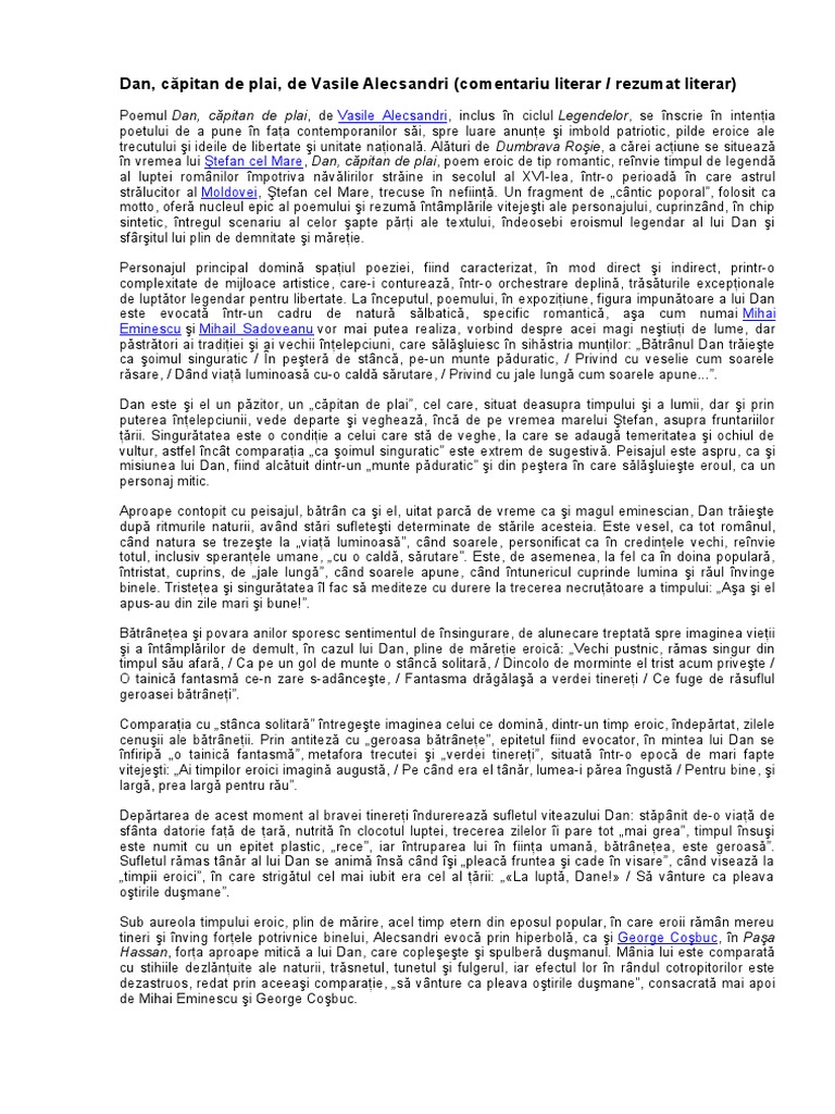 Dan, cpitan de plaide vasile alecsandri caracterizarea lui dan principalul personaj. Dan capitan de plai de vasile alecsandri de vasile alecsandri sinteza, referat, eseu, opera, a lui vasile dan, ranit si el, este luat de ghirai ca prada si trofeu. Dan era o persoana singuratica deoarece toti cei e vasrta lui au murit.