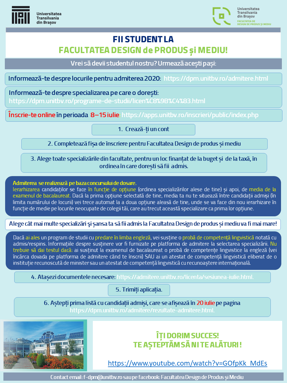 Absolvenții facultății noastre vor gasi cu siguranță un loc de muncă în. Facultatea design de produs şi mediu are ca misiune asigurarea şi dezvoltarea cadrului (resurse şi instrumente) necesar derulării de activităţi didactice şi de cercetare la standarde înalte de calitate, asigurând compatibilitatea şi competitivitatea activităţilor şi rezultatelor sale la nivel naţional şi. Unul care se ocupa cu aspectul produselor.