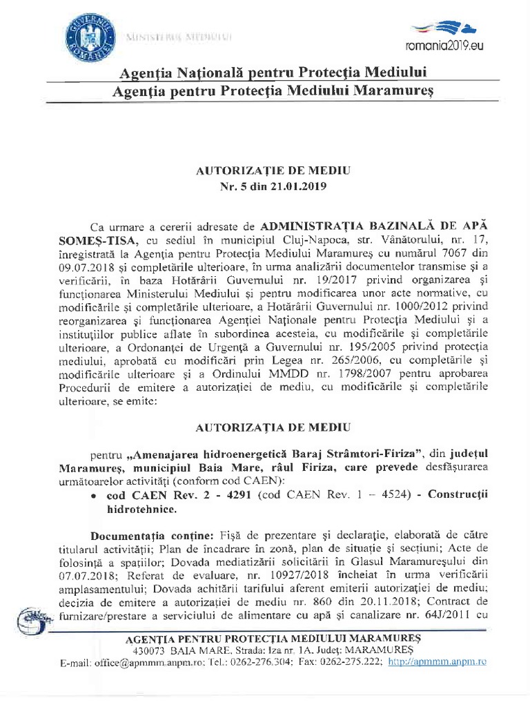 vizitati articolul complet aici : https://www.facebook.com/pages/category/Government-Organization/Agen%C8%9Bia-pentru-Protec%C8%9Bia-Mediului-Bihor-108845857516373/ 2 (1) procedura de emitere a acordurilor de mediu este condusa de autoritatile publice pentru protectia mediului, in conformitate cu prevederile cap. Acpm face publica decizia de emitere a autorizatiei de mediu. In baza certificatului constatator eliberat pentru punctele de lucru ale societatii, urmatorul pas este verificarea in anexa 1 din hg 1798/2007 daca respectivele coduri caen sunt supuse autorizarii de mediu.