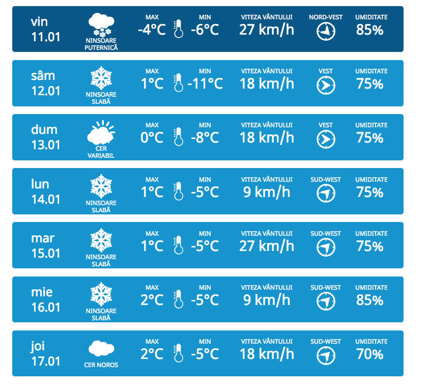 Prognoza Meteo Ianuarie 2019
